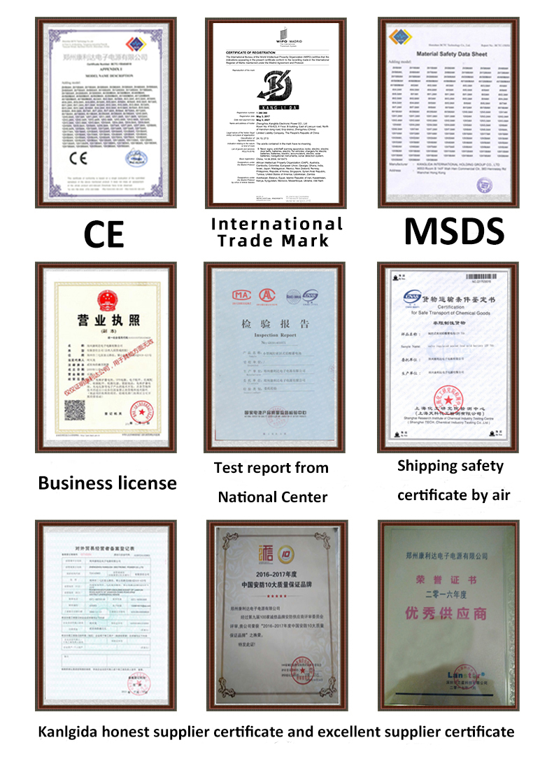 5. Certificates--CE&MSDS certification and National Center For Quality Supervision and Inspection of Battery Products approved